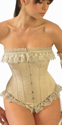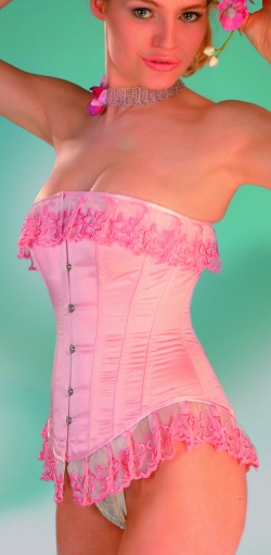 Mädchenhaft erotisch und romantisch verspielt mit einem Hauch Nostalgie ist dieses Halbbrustkorsett mit romantischer Spitzenrüsche am oberen und unteren Abschluss.