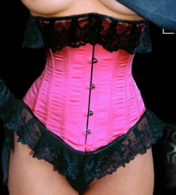 M 520 in fuchsiafarbigem Satin mit schwarzer Spitzenrüsche