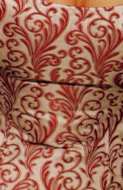 In Jacquard, Brokat, bedrucktem Satin oder Gobelin, mit seitlich im Rücken eingearbeitetem verdeckten Reißverschluß zum bequemen An- und Ablegen und mit angenähter Rückenlasche. Die Schnürung befindet sich mittig im Rücken. Stoffmustervorschau