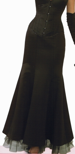 R 4 nur in Satin - Der Schnitt des extravaganten Satinrockes mit Tüllsaum zeichnet eine Glockenform. Anfertigung von Konfektionsgrösse 34 - 54 möglich.